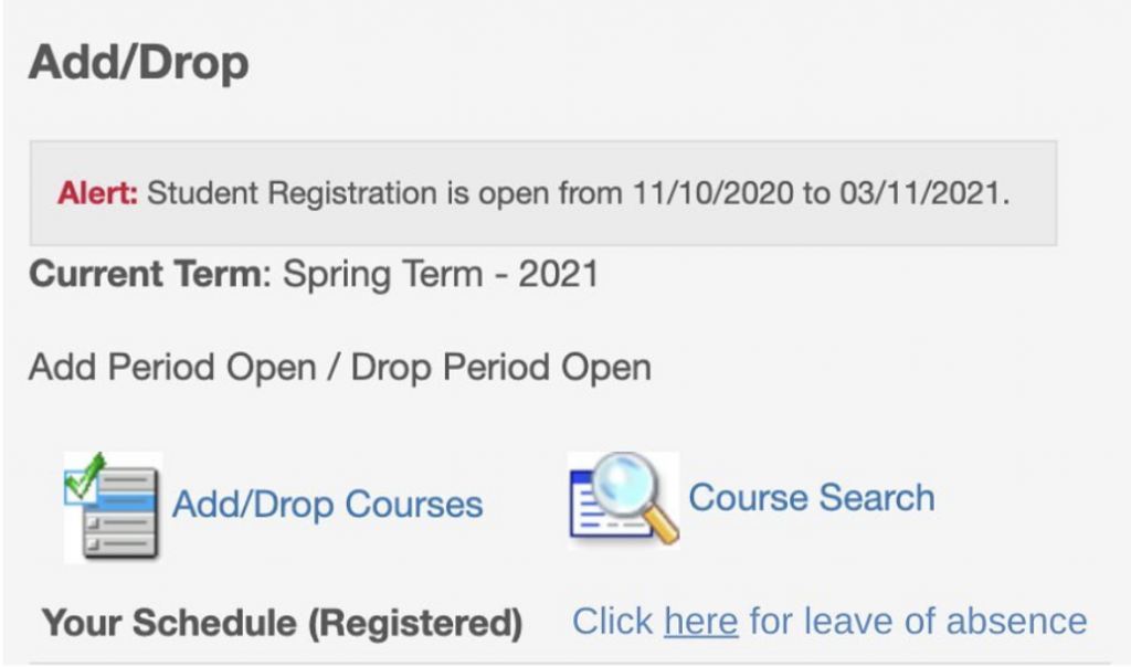 5Cs Add Last Minute Class to Portal Titled “Click Here for Leave of Absence”